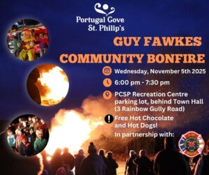 Celebrate Guys Fawkes Night in partnership with our Portugal Cove-St. Philip’s Volunteer Fire Department at our huge community bonfire!